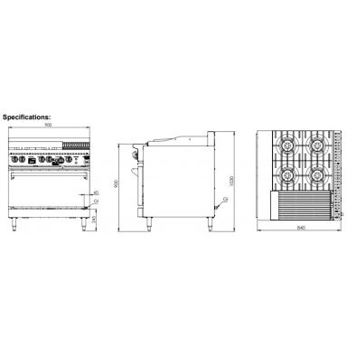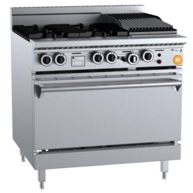 B+S K+ Combination Ovens with Four Open Burners 300mm Char Broiler KOV-SB4-CBR3