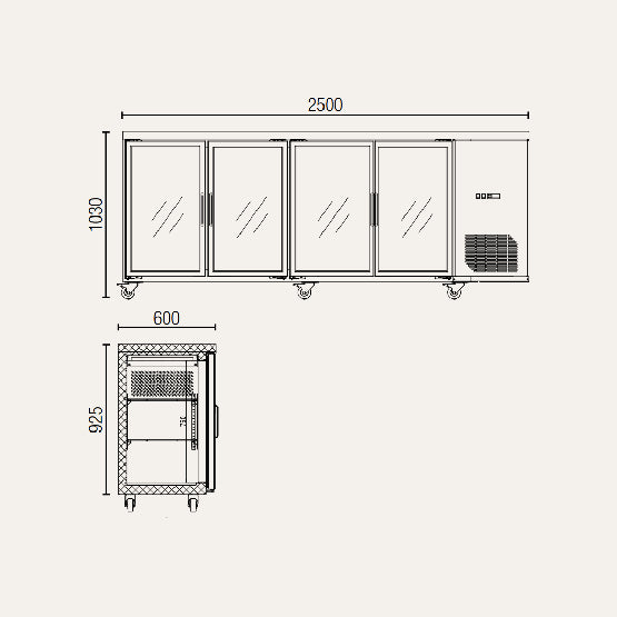 Exquisite UBC630 - 4 Swing Doors Backbar Display Fridge