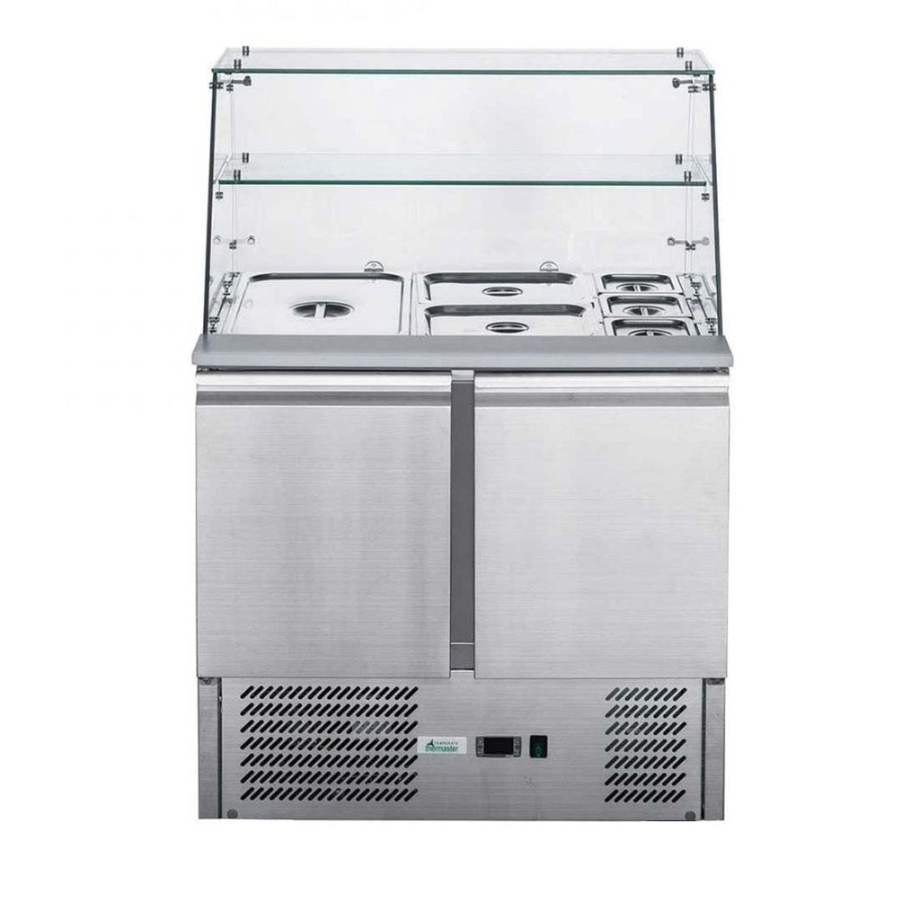 FED-X Two Door Salad Prep Fridge with Square Glass Top - XS900GC