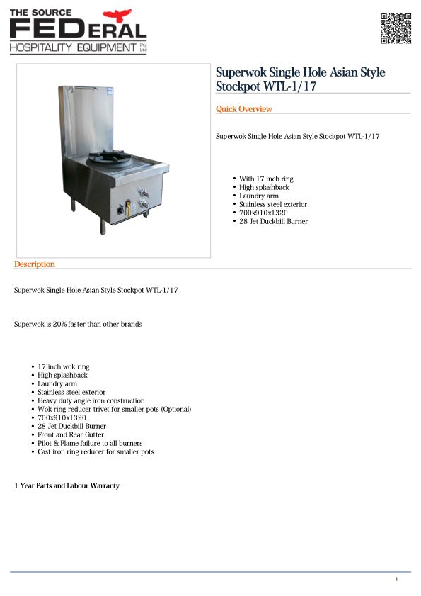 | Warranty | 1 Year Parts and Labour |