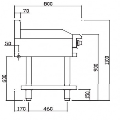 - Benchtop model gas connection: 60mm from bottom