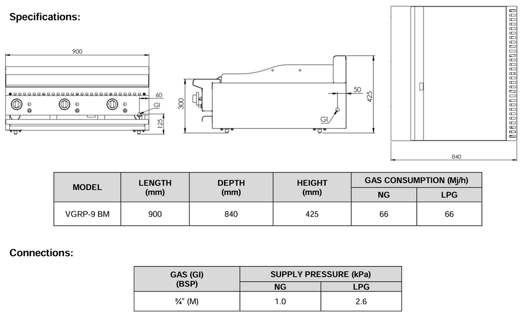 B+S Verro Grill Plate 900mm Bench Mounted VGRP-9BM