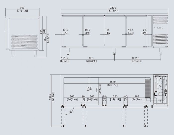 Dimensions: 2230(W) x 700(D) x 838(H)mm