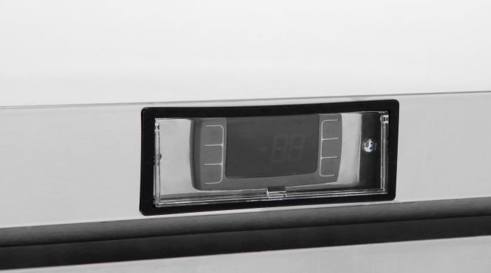 - Cabinet top is one-piece, heavy-duty reinforced stainless steel to support countertop equipment