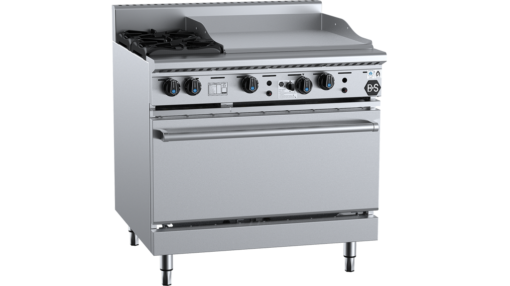 B+S Black Combination Ovens with Two Open Burners & 600mm Grill plate OV-SB2-GRP6