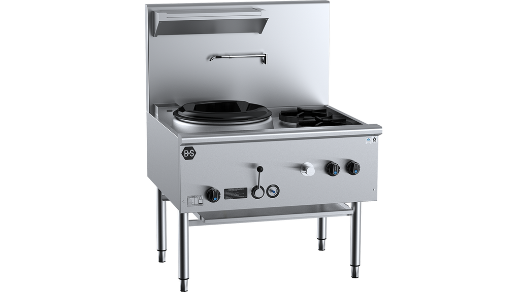 B+S Black Singl Hole Deluxe Waterless Wok Table with Two RHS burners UFWWD-1SB2