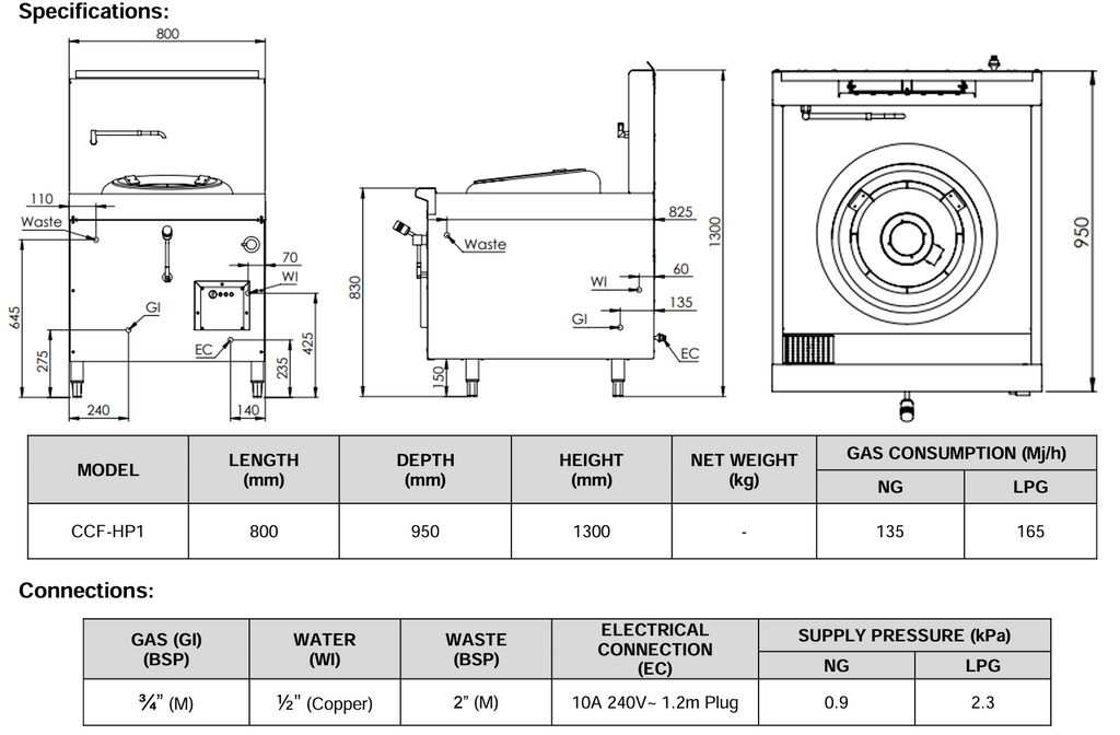 B+S Black Single Hole Hi Pac Wok CCF-HP1
