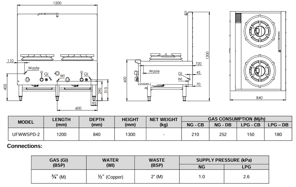 B+S Black Two Hole Deluxe Waterless Stock Pot UFWWSPD-2