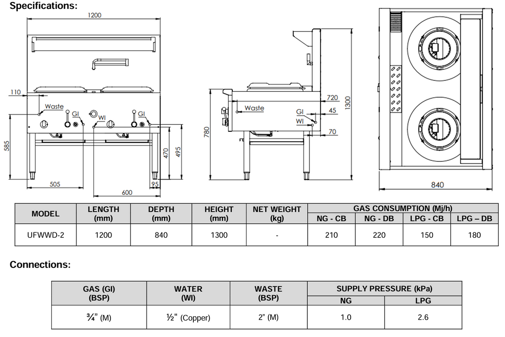 B+S Black Two Hole Deluxe Waterless Wok Table UFWWD-2