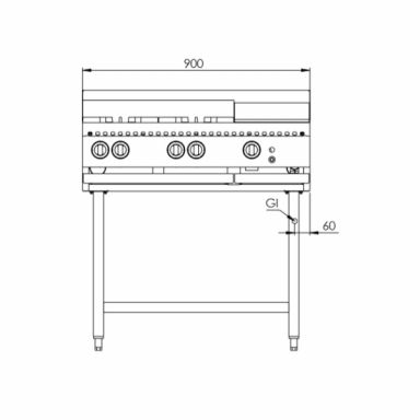 B+S K+ Combination Four Burners & 300mm Grill Plate KBT-SB4-GRP3