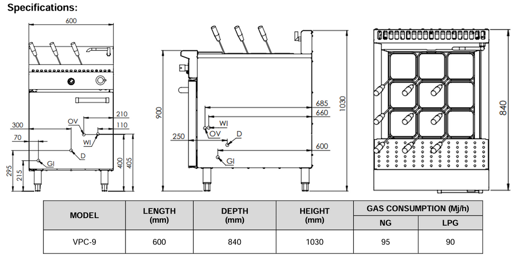 B+S Verro Pasta Cooker 9 Baskets VPC-9