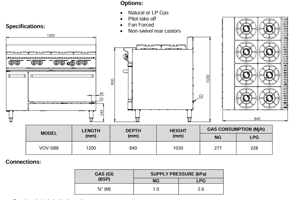 B+S Verro Standard Ovens Eight Burner VOV-SB8