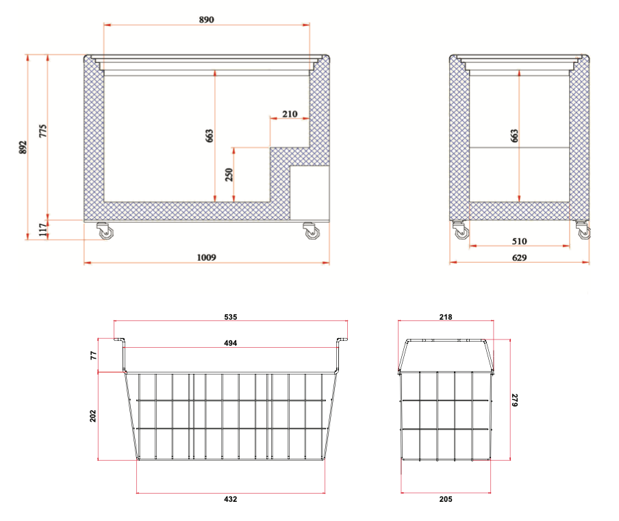 • External dimensions (mm): 1010W x 629D x 892H (Depth excludes handle protrusion)