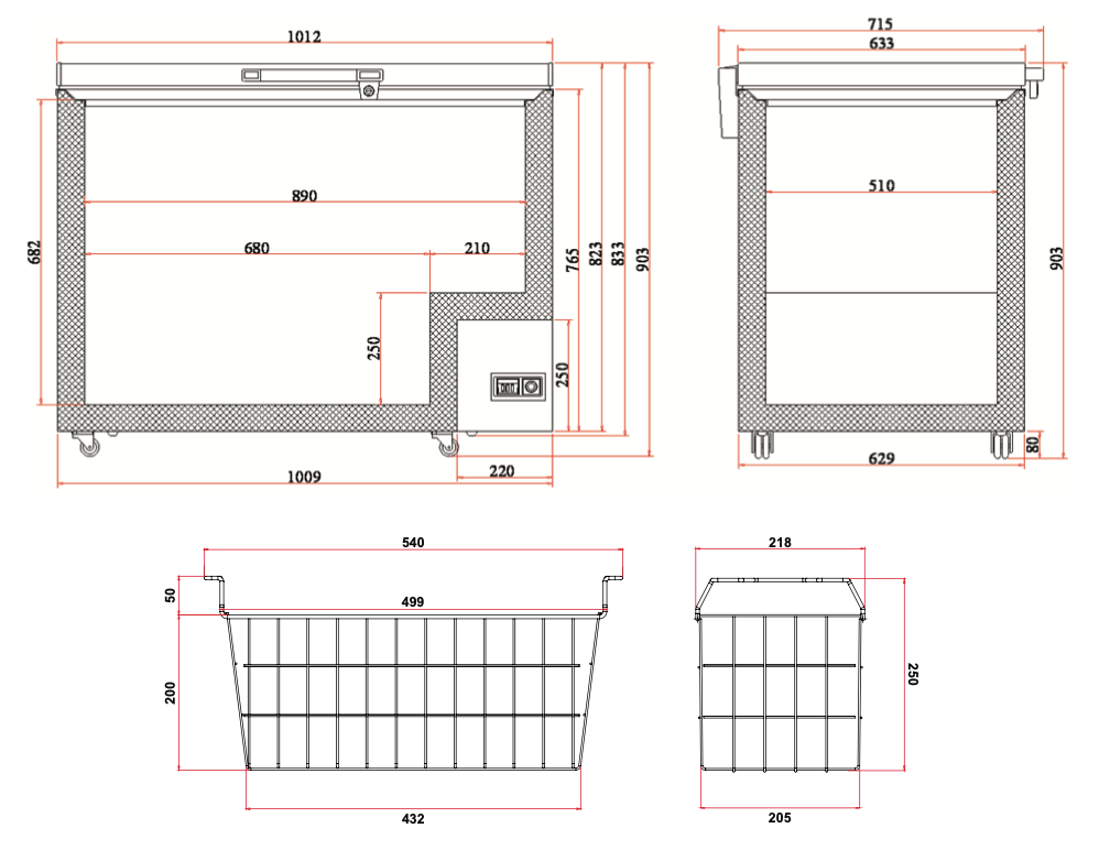 • External Dimensions (mm): 1012w x 715d x 903h Depth dimensions include lightbox and handle protrusions