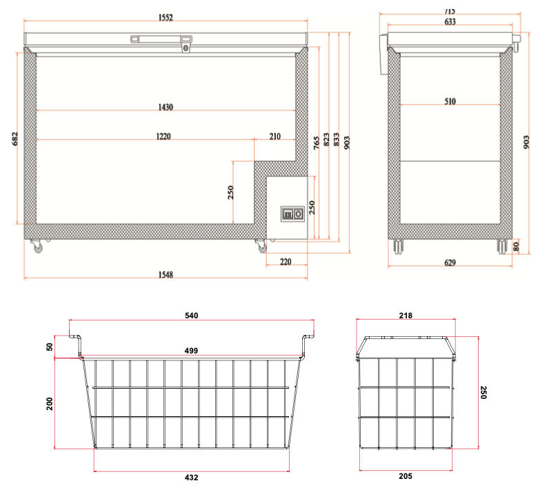 • Internal Dimensions (mm): 1430w x 510d x 682h
