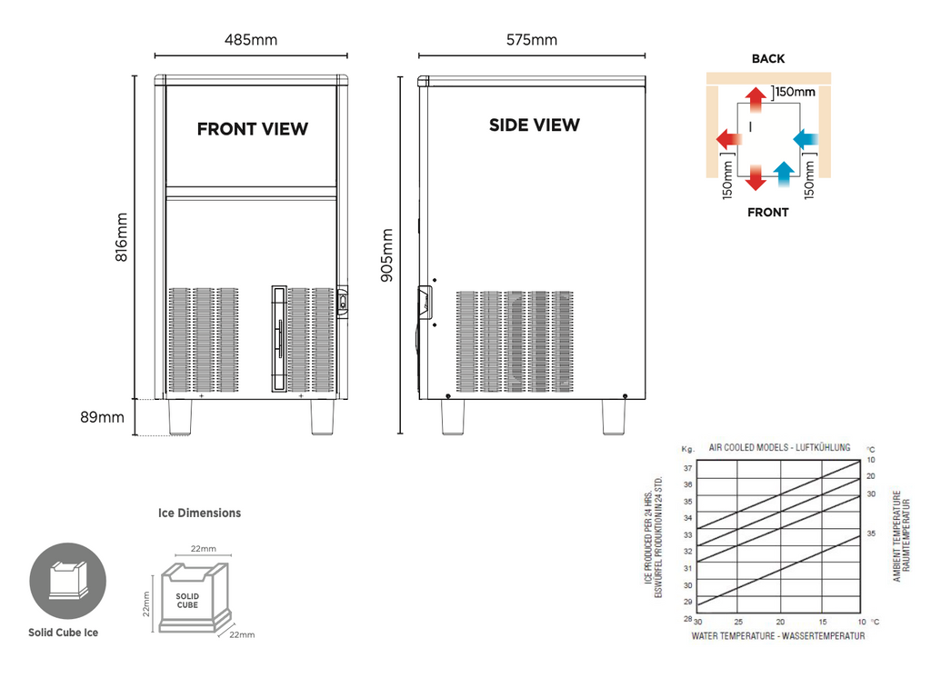 - Large solid ice cubes that cool quickly and maximise liquid displacement