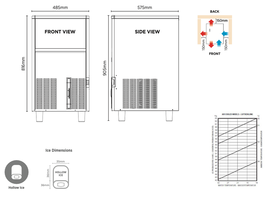 • Ice Cube Size (mm): 36H x 36W x 35D