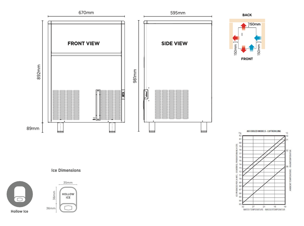 • Ice Cube Size (mm): 36H x 36W x 35D
