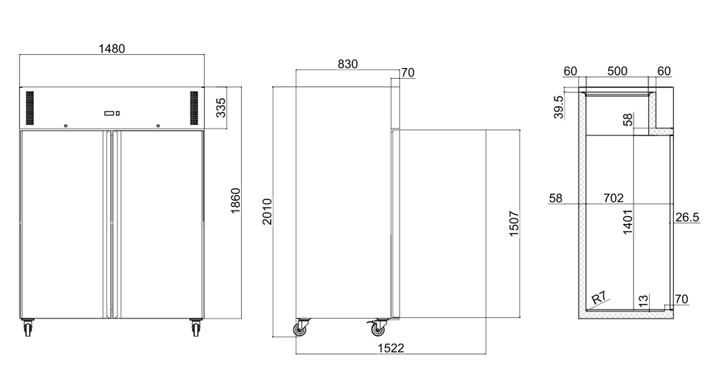 • Internal Dimensions (mm): 1360w x 685d x 1395h