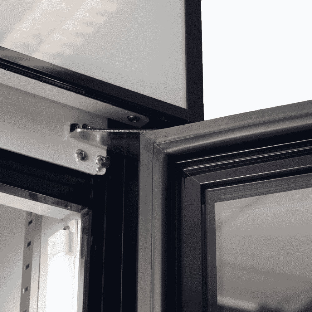 - The double-glazed glass self-closing doors reduce heat keeping condensation at bay and ensuring your products are clearly visible.