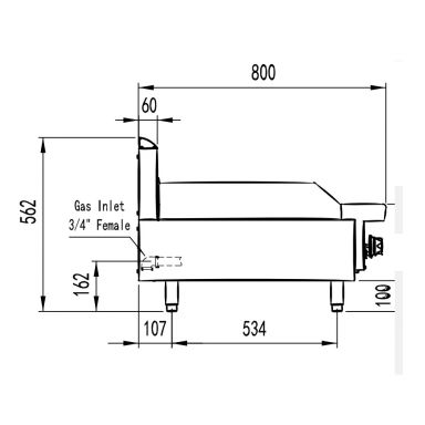 COOKRITE BENCHTOP 600mm GAS CHAR GRILL (600W x 800D x 562H / Mj:48) [AT80G6C-C]