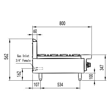 COOKRITE BENCHTOP GAS OPEN 8 BURNER (1200W x 800D x 562H / Mj:224) [AT80G8B-C]