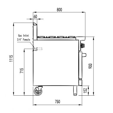 COOKRITE GAS 8 BURNER WITH OVEN (1200W x 800D x 1115H - Mj:224, Oven - Mj:52) [AT80G8B-O]