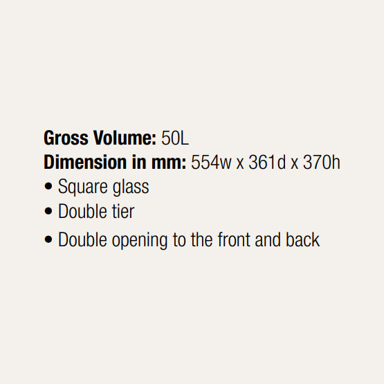 - Gross volume: 50L