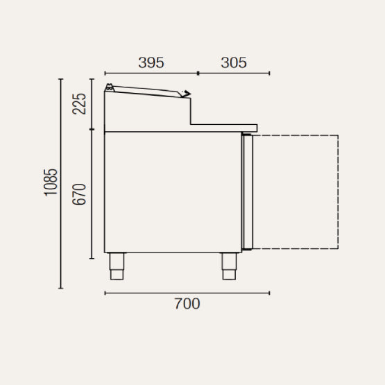 • Under bench shelf to fi t gastronorm pan size GN1/1