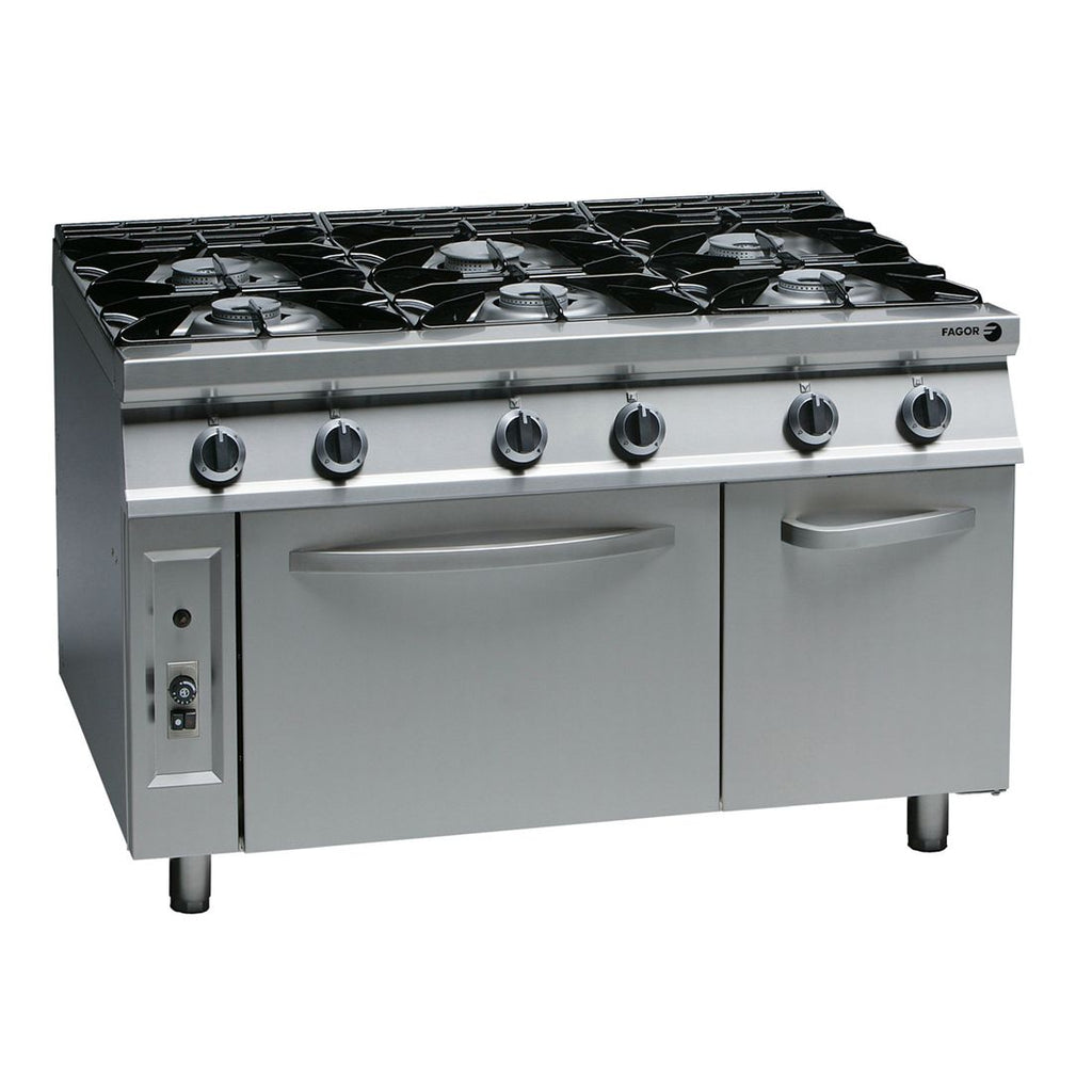 Fagor 900 series natural gas 6 burner with gas oven (GN 2/1) and neutral cabinet under CG9-61H