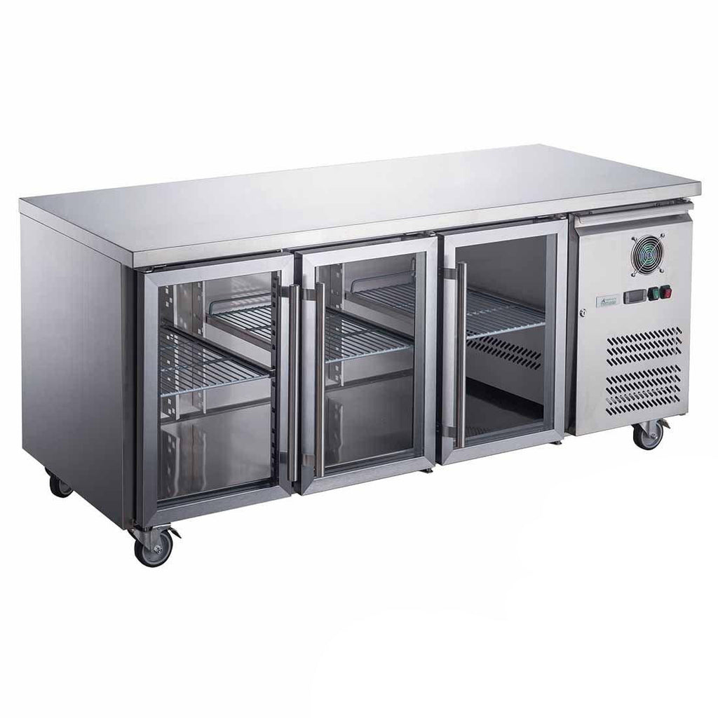 FED-X XUB6C18G3V Three Glass Door Bench Fridge 339L W1795mm