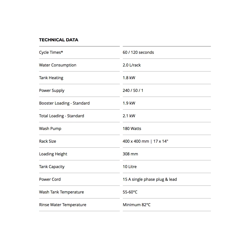 • Rotating top and bottom wash system to distribute the wash water evenly over the dishes
