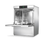 - Nominal capacity with double rack: up to 80 racks/h (40 plate racks + 40 glass/cup racks)