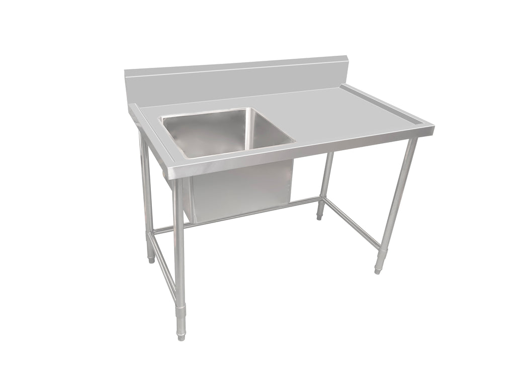 Full Stainless-Steel Commercial Grade Single Sink Bench with splashback, sink on the left