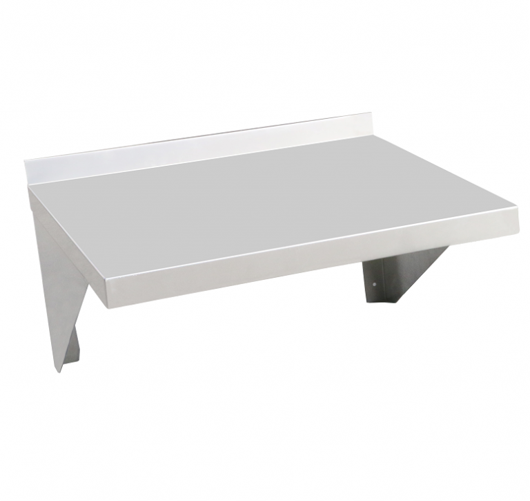 - Commercial Grade 1.0mm thick Stainless-Steel wall shelf and bracket with reinforcing bars
