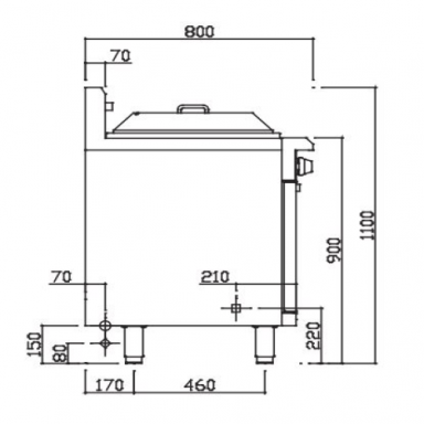 - Gas 180mm from right, 70mm from rear, 150mm from floor