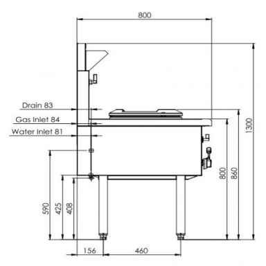 • Gas 121/721mm from right, 84mm from rear, 425m to floor