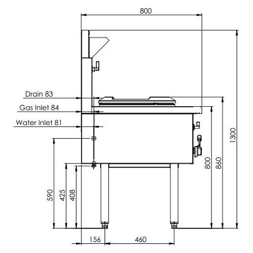 • Gas 61mm from right, 84mm from rear, 425m to floor