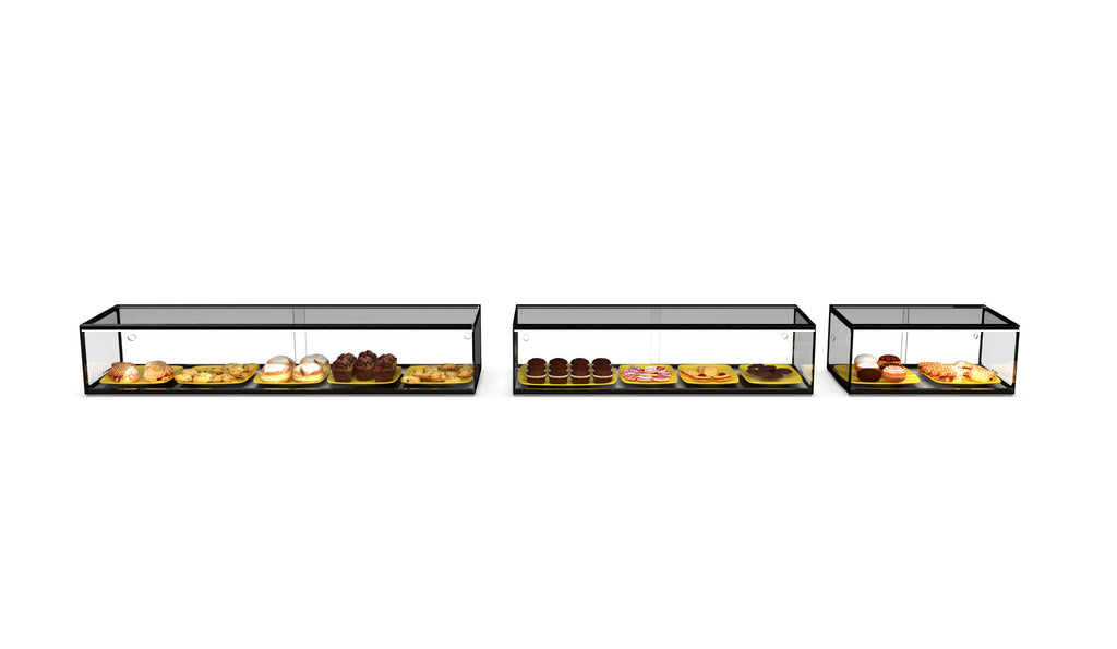 This Two Tier Ambient Display is an elegant and hygenic glass display which can be placed directly on service counter or on a existing food display cabinet. It is perfect for displaying cupackes, biscuits, muffins and other food items not requiring refrigeration.